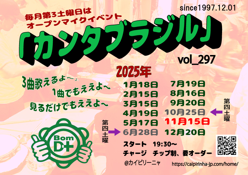 11月22日(土)は、店主がForró Oceloteのライヴに出演するため、カイピリーニャはお休みさせていただきます。
